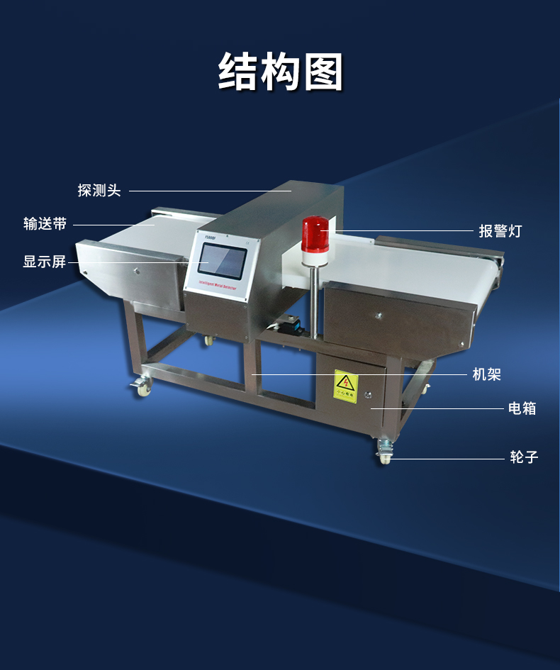 6、檢測到微量金屬時,聲、光、儀表同時報警,不合格產(chǎn)品自動返回到停止?fàn)顟B(tài)和排除裝置控制分離。