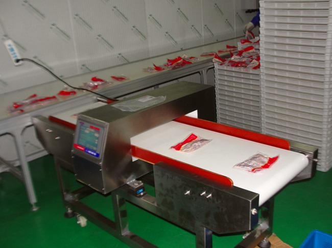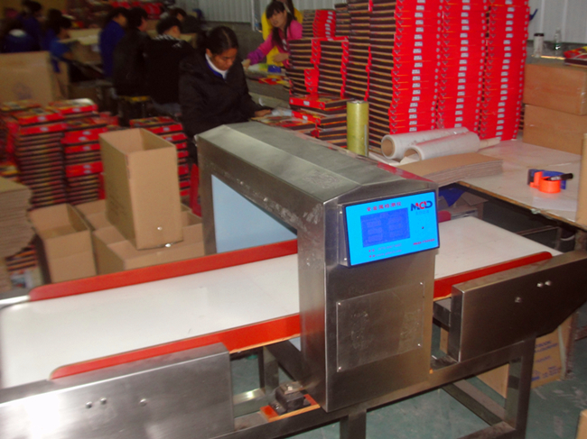 圖為食品金屬檢測儀工作工作現(xiàn)場: