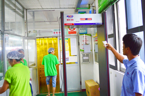 此次,深圳森紹榮(玩具廠)大量采購我司這種防水性安檢門,工廠此次目的也是用來進(jìn)行安全檢查、防偷竊檢查,而我司這款MCD-300安檢門能準(zhǔn)確探測(cè)到人身上或手提包箱中攜帶的金屬物品或含有金屬的物品,如各種管制刀具、武器、金屬制品、電子產(chǎn)品及其他含有金屬的物品等,森紹榮安裝了我司生產(chǎn)的高端國(guó)產(chǎn)MCD-300型安檢門,得到良好的效果及廠領(lǐng)導(dǎo)的一致肯定與好評(píng)。
