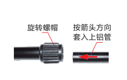 2.連接好2根鋁管,套入到適合的長(zhǎng)度,然后旋轉(zhuǎn)螺帽擰緊固定即可,如圖:
