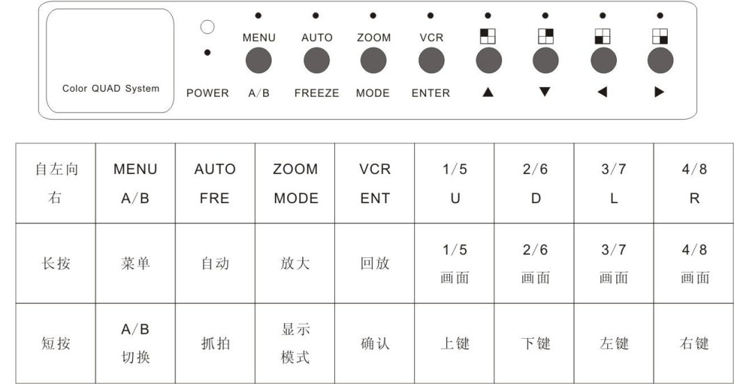 (2)AUTO 鍵:長按進(jìn)入單畫面自動切換,短按為畫面凍結(jié)。